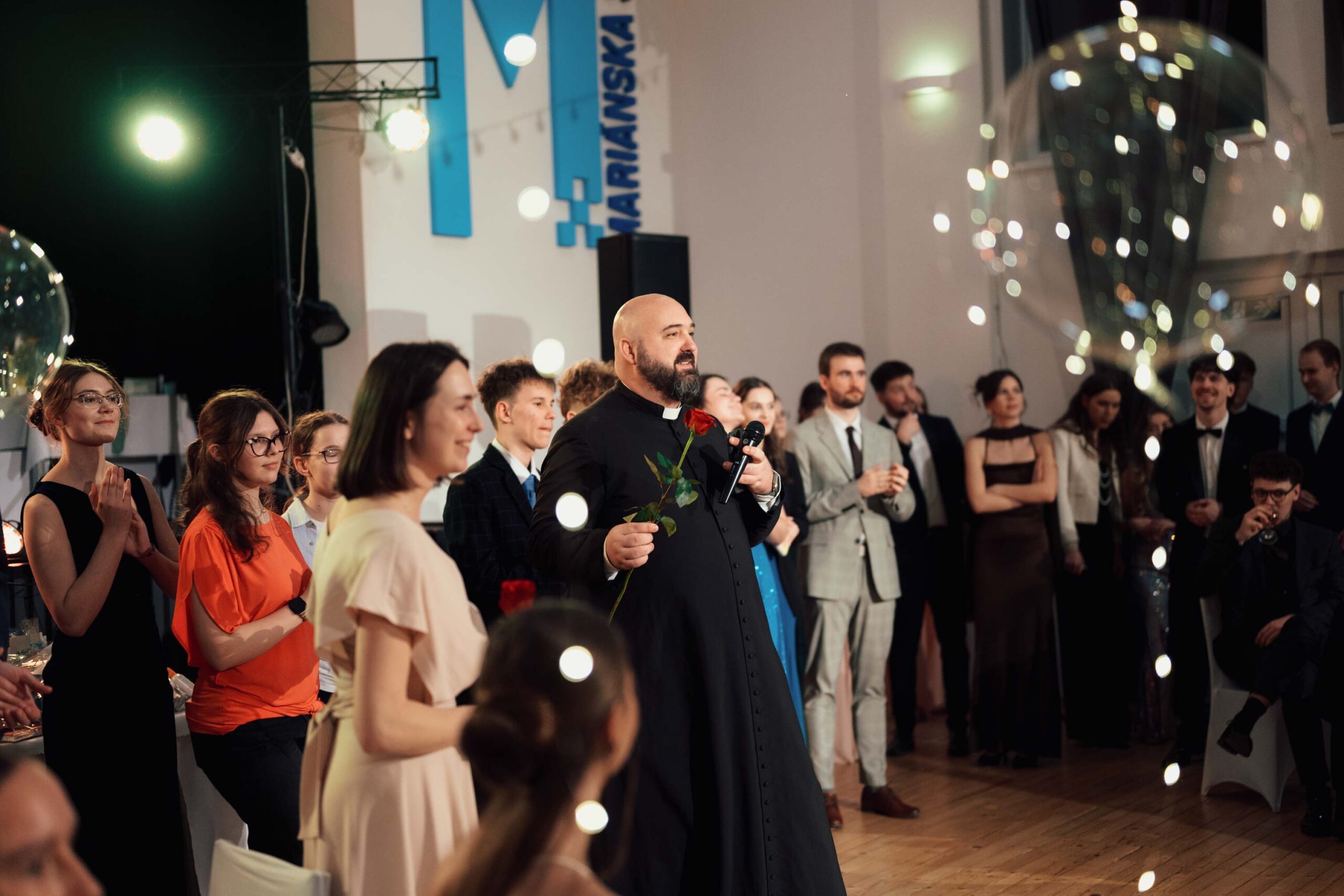 Ples sme začali svätou omšou, ktorú celebroval otec arcibiskup Ján Orosch v Kostole Najsvätejšej Trojice u jezuitov, za čo im patrí veľká vďaka. Samotný ples pokračoval v Mariánskej sále, ktorá ponúkla príjemne zrekonštruované priestory.